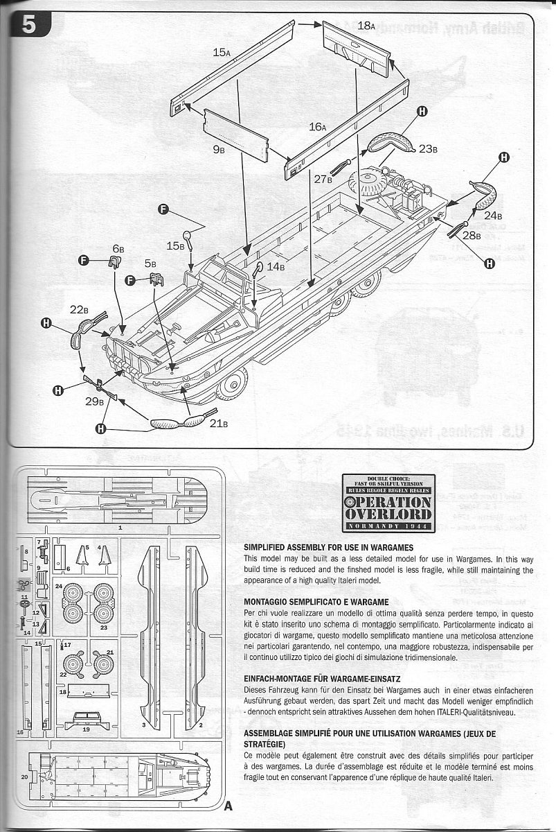 M8 Greyhound Italeri issued around the same time, the DUKW can be built either as a detailed display model, or by omitting details and using alternate parts,