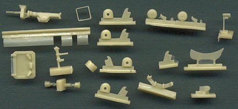 What it does contain is a collection of some of the smallest parts I have ever seen cast in resin. It's actually a fairly small set that allows you to improve the look of many of the smallest details on the Ferdinand kit. The gunner's periscope and armored cover are provided, as is a new roof-top ventilator and armored shield. Lift hooks of an accurate thickness are provided, though, I really think that was something that we could have done ourselves... A new driver's hatch is included, with armored periscope covers, and it would have been nice to include both of the front crew hatches. Other miscellaneous details include towing eye rings, armored view port covers, exhaust deflector shields, a jack, and open pistol port plugs, which I think are the neatest items in this set. I think that for the most part, this set is pretty decent (the sculpting and casting are excellent), and it is fairly inexpensive. However, it really needed to include a replacement engine deck, because without it, the Dragon kit is still pretty worthless, even with these added details. |