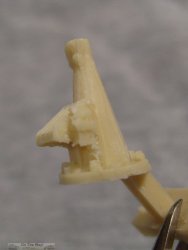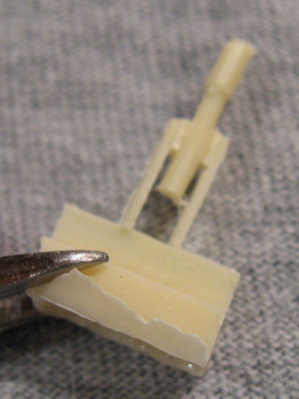 Inside the package you get five light tan resin pieces for the gun's mount and cradle plus one turned brass barrel. The resin pieces have numerous pin holes