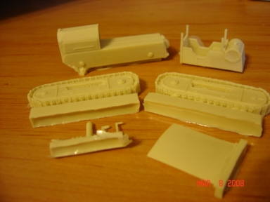 2. The kit Material: Resin Quality: Casting is good with little flash and good detail on the kit Parts: 10 pieces (hull, driver's compartment, x2 track assemblies, muffler, canopy, x2 steering levers, hand crank, hitch) Instructions: Simple profile drawing Packaging: Zip-Lock bags Additional: another never-before made kit of an unusual subject .