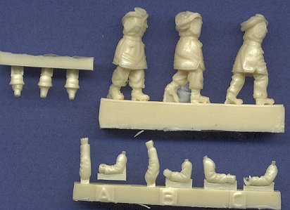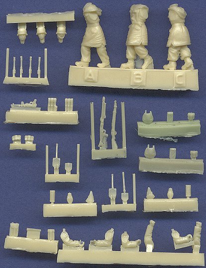 Another highly detailed set of figures from MIG Productions. Staying with the WW II German theme, this set of three full figures represents a German assault team on the Eastern Front, probably during the winter of 1942-43, or perhaps the following year. Once again, we are given numerous parts, all molded separate from the bodies providing better detail, and choice of poses. Everything is very well sculpted and cast. The figures measure about 25mm tall including boots and helmet.