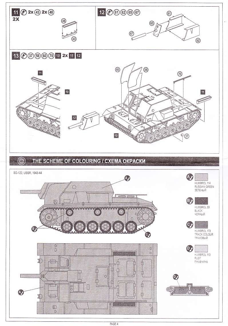 The upper hull has the features of a Stug 3B/C which appears valid based on the info regarding the origins of this vehicle. The hull shape looks very close to Trumpeter's Stug 3B hull minus the tools. The lower hull with wheels and the link and length tracks looks very similar to Revell's Panzer III. This results in some fit problems between upper and lower hull with the lower hull being about 1mm shorter than the upper hull. Also the lower backplate is too small resulting in a big gap with the upper hull. A possible easy solution for the fit issues would be to use a Trumpeter Stug 3 hull as a replacement. Do not use the escape hatches. They are incorrect for a Stug 3 base! The gun housing needs some putty and sanding and the barrel is very crude. There are some cheap aftermarket barrels available as replacements though. It is also unlikely that the early sprocket and idler wheel were used on this vehicle. The engine hatches with air intakes were standard for a late Stug 3E on, so replacement hatches need to be obtained elsewhere. The fit of the fighting compartment is not too bad with just the front armor plate being too long. This mistake is not very easy to correct, because the big hatch on the upper hull and driver visor limit the options for shortening. I would remove all the small lights on fenders. Other captured vehicles show that the Russians removed most of such German goodies. Most of the small items like lights and tools are useful. Overall a nice kit with less work than I was expecting from MW.