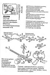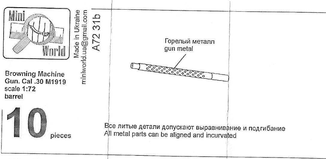 This set consists of 9 cast bronze parts for the gun, ammo box, mounting bracket, shoulder piece, tripod legs and wheels; a small photo-etched fret for the spade grips and sights for