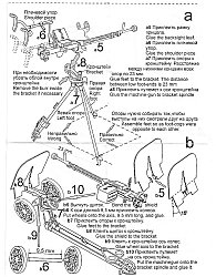 The instructions are provided on a small sheet with captions in both Russian and English.