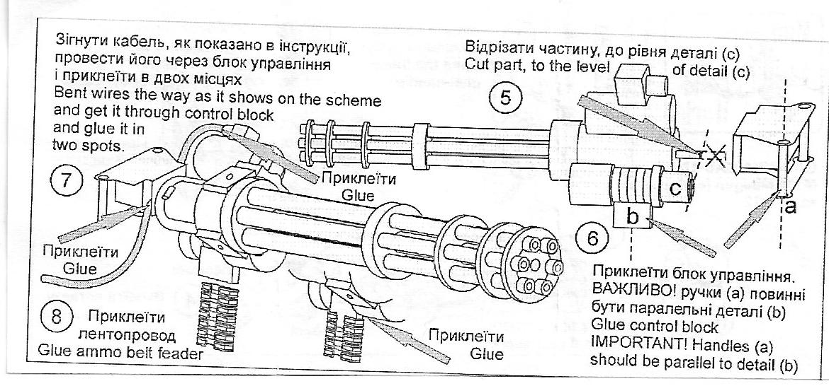 grips; two lengths of flexible ammo belt feeder; a short length of thick wire to use for making the handles of the spade grip; and a length of thinner wire for the power cable. A length