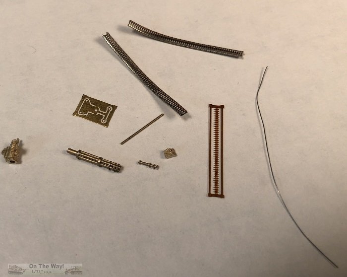 anti-aircraft and ground use; a separate etched-brass shield; and a short length of wire to use for making the handles of the spade grip and the axle for the carriage. A length of