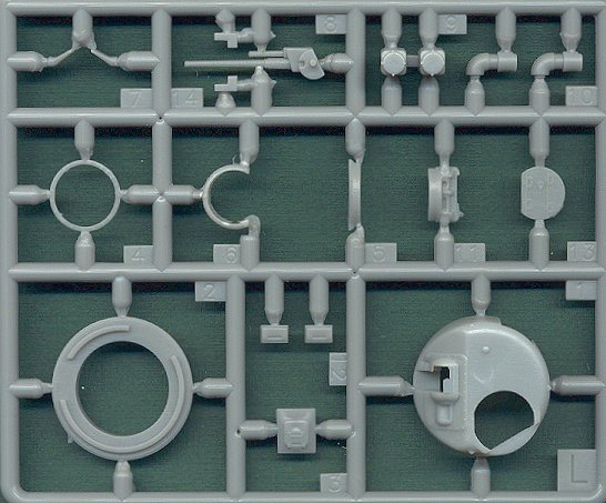 The three-piece final drive housing is superbly done, with separate parts for the raised ridges so that the bolt detail could be included (although there is no line down the center of these ridges to represent the two plates bolted together). The wheel suspension units are incredibly detailed. I was hoping that we'd be able to articulate the wheel suspension arms such as we can on the Extratech M10 series, but alas, this ability is not provided. The open-spoke wheels are the best M3/M4 wheels I've seen in this scale. The turret is very detailed with a complex construction process necessary for the retention of the detailed commander's cupola. As far as I can tell, there is no provision to build this without the cupola to represent the late British version of the Lee. Again, the 37mm gun can be made moveable if the modeler so desires. The tracks look nice, and are very detailed. Normally I do not like rubberband tracks because of the difficulty in replicating track sag, but that's not an issue with this vehicle, so it should not be a problem here. Mirage informs me that these tracks are made with a new plastic formulation, which I assume allows for easier gluing and paint retention.