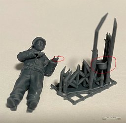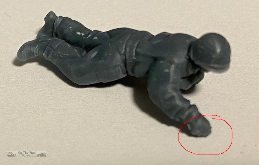 Figure 3 is supposed to be holding a German helmet (with tiny decals provided), however the helmet is literally embedded in