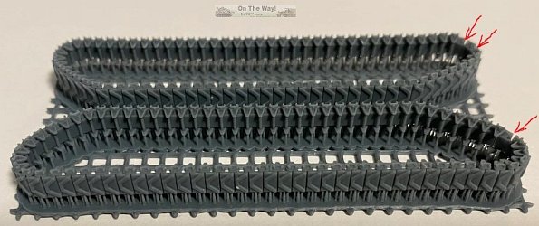 A separate print provides the rubber chevron track assemblies. These are printed as full tracks, with none of the wheels in place.