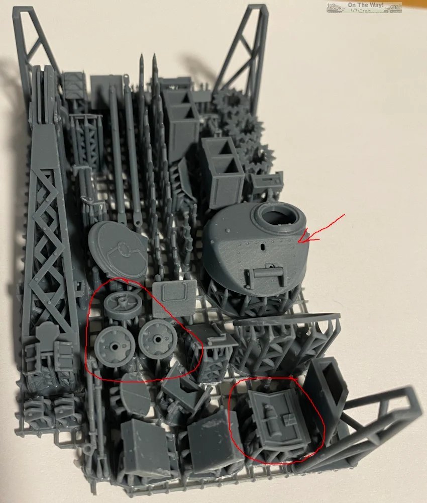 - parts PR29 (extended boom struts) and PR17 (dummy main gun) were broken loose from the printing supports but undamaged