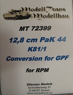 What you get is a set to convert the RPM Canon de 155mm GPF/K419(f) (kit no. 72602) into the German 12.8cm K 81/1.