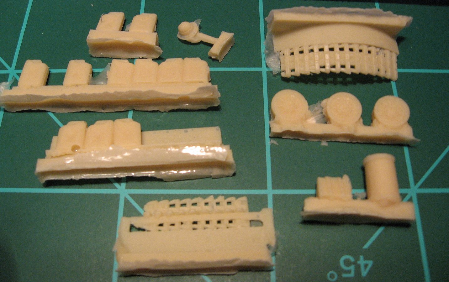 Six moldings of the gas/water cans with 2 of them molded as a 4 piece grouping and a 3 piece grouping,