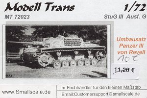 ![]() So why get a resin kit of a Stug III G when a perfectly good plastic kit is available from Revell? Well, two reasons: first, this resin conversion from Modell Trans was released prior to the release of the Revell kit (it was modified from a Revell Panzer III hull). Second, it is a slightly different version than what is represented by the Revell kit. There were a great many changes to the basic Stug III G during its production run, and this resin conversion set has several differences in detail from the Revell kit.