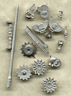 Some of the parts are provided in cast metal, such as sprocket wheels and hatches, and the 17 pdr gun barrel is a beautiful turned-aluminum piece. All of these parts are very well detailed and cast.