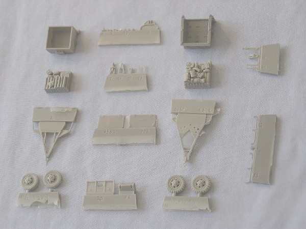 This set is another of the fine items we have come to expect from MR Modellbau of Germany. The M8 and M10 trailers were often used with the M8/M20 scout cars but also with other allied armoured vehicles. Professionally cast in light grey resin which is at first glance indistinguishable from injected plastic, the parts show only the thinnest of flash in some parts. The level of detail is amazing for