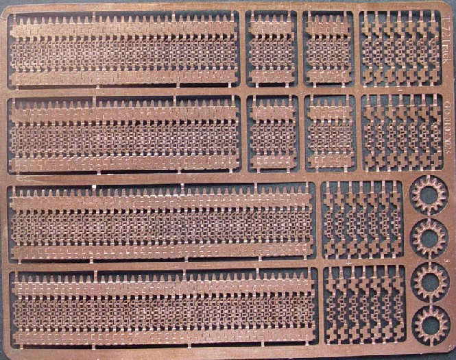 A highly detailed set of Photo-etch for the T-72, it comes in the link and length style rather than the wrap around style of some etched tracks, This I think is the better option than the wrap around as it stops that bent appearence that sometimes happens on the wrap around tracks.The fret also includes some new teeth for the sprockets. My only misgivings about the tracks are the fact that when put together they seem a little thin, the tracks in real life seem a lot chunkier. Many thanks to OKB for the review samples |