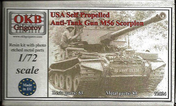 OKB Grigorov's M56 comes packed in a small but sturdy box, with a black and white picture of an M56 in Vietnam on the front. While the box states the kit