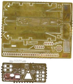 The kit includes two frets of photoetched parts. The larger fret (approximately 0.09 mm thick) includes the fenders, numerous covers for the ammunition