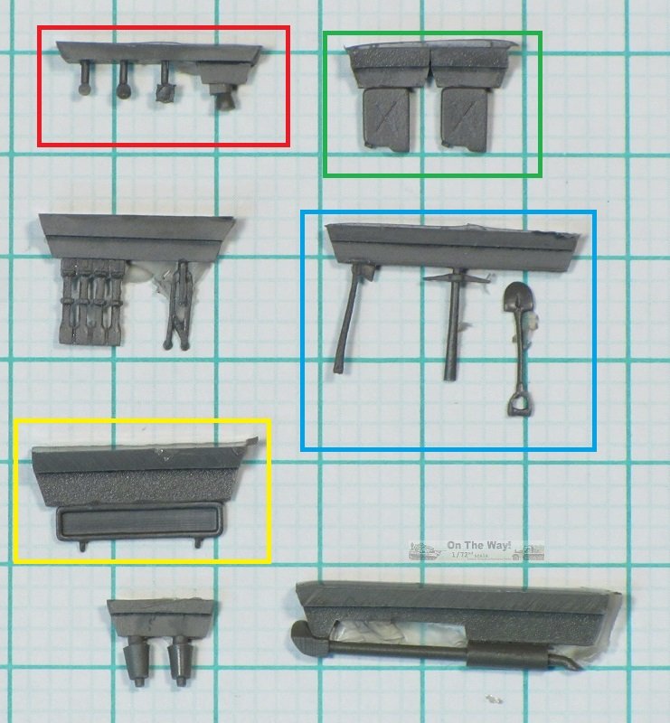 A nice improvement over other OKB kits of US vehicles I've seen is the inclusion of a set of pioneer tools (blue box). However these don't quite match the