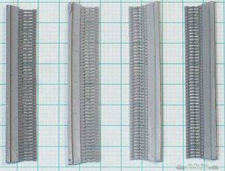 composed of 5 sections with 15 crossbars each. The kit track width measures 8.7 mm and the crossbar pitch is 1.5 mm. This scales out at 23% too wide and 5%