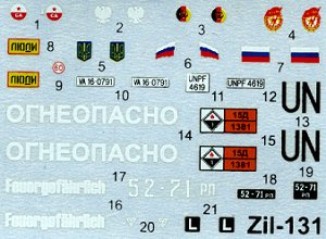 ![]() Continuing with the truck theme, this fuel tanker comes to us courtesy of Omega-K, a company that I believe is no longer producing kits. Some of their molds were picked up by ICM. This truck is based on the Zil-131 truck, and many of the parts below are common to all the Zil-131 variants in the Omega-K lineup. The sprue with the fuel tank parts (lower left) is unique to this kit. Again, this is a very nicely detailed kit, though perhaps not as much so as the ZV Models truck kits. There is a little bit of flash to be cleaned up, but overall detail is very good. A common feature to all these truck kits are closed doors on the cabs; although it is certainly possible to open them up manually, it certainly won't be easy. The clear parts here are much thinner than in other truck kits, and I think they will be quite usable. Numerous markings are included, though the instructions (which are otherwise quite well done) do not show most of them. I can recognize Soviet, Russian, East German, Ukrainian, and UN markings, though there may be a couple others as well. This is a very nice kit. Thank you very much to Maurice Metzger for providing the review kit. |