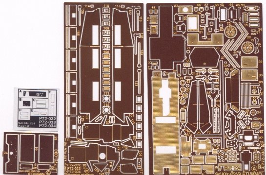 First, this is a 2-in-1 set, as you receive the "normal" Sd.Kfz. 251/1 PE frets, together with the components to detail the Sd.Kfz. 251/9 Ausf. D from Hasegawa. The problem with the plastic kit is the lack of detail in the area of the K51 L/24 gun, as traversing and elevating wheels are missing, which this fret addresses, but the other absent parts, like the left hand recoil guard and the periscope sight are not included. As always, some of the PE could be useful, while others could be tricky, to say at least, not only for their dimension, but also for the need to overlay and bend in some weird angles. Overall this is an Excellent Set.