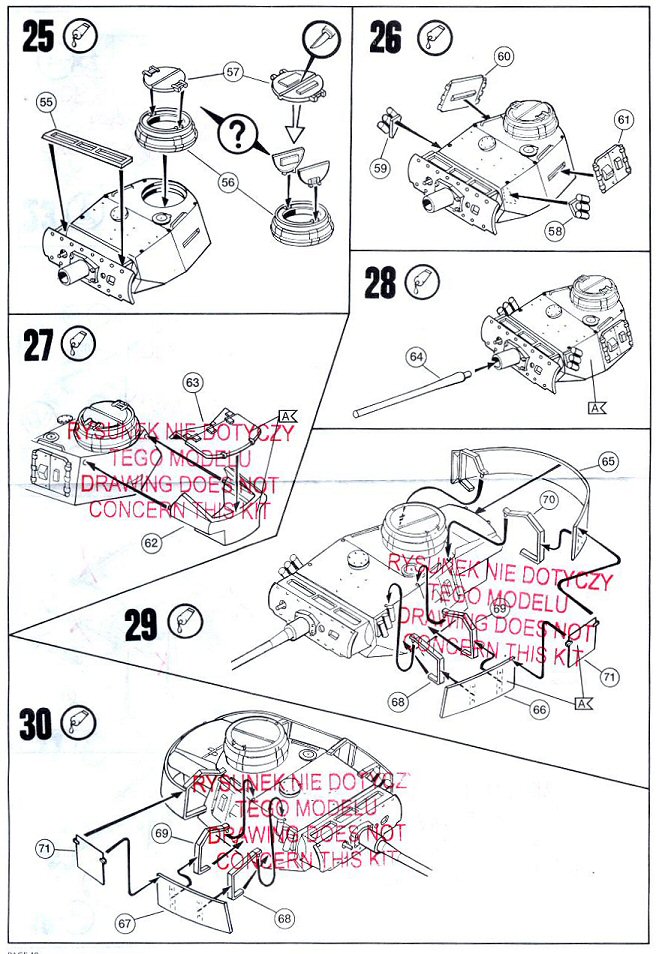 Due to the large number of pieces that won’t be used, many of the steps in the Revell instructions were stamped in red with the phrase “Drawing does not concern this kit”.