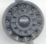 The sprue included in this kit has the earliest style of road wheel, which is pictured below in detail: