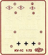The decals are fairly comprehensive, including markings for a captured German KV-1C (unmodified).