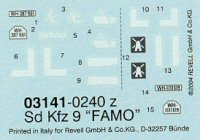 Until now the best representation of this vehicle (in my opinion) was produced by Planet Models in resin with photo etched parts (a Planet Famo I did may be viewed at http://www.ontheway.us/gallery7/JHermeyerFAMO.htm). Compared to the Planet kit, the Revell model is much better in a lot of aspects (accuracy, detailing, dimensions, no pouring blocks, photo etched parts are too flat as usual). The biggest disadvantage is still the price. Knowing that you will get three Revell Famos for the price of one Planet Famo, you could imagine to build a dio showing three Famos coupled together towing a Tiger or Panther. Thank you very much to Revell AG for providing the review sample. |
