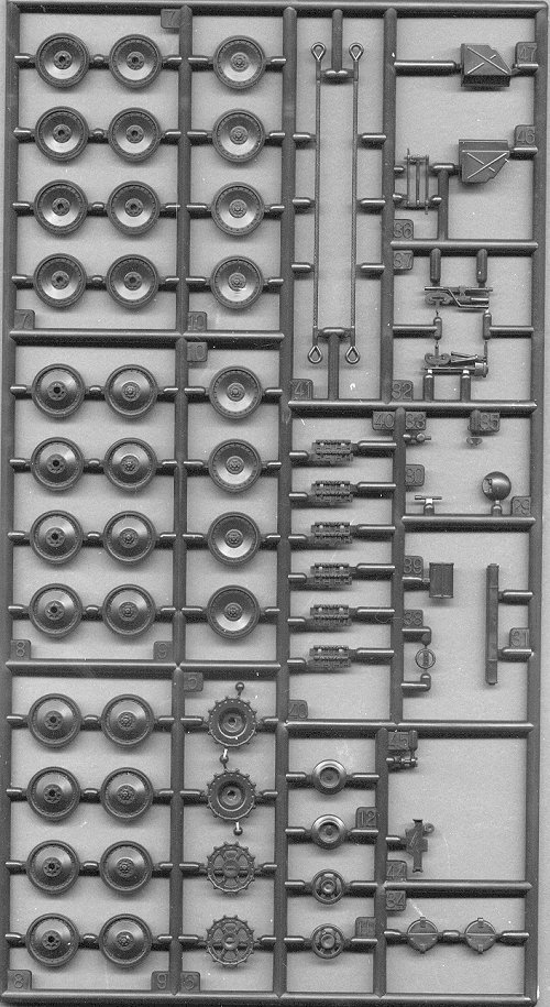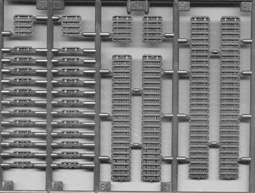 I think that the tracks are very well molded, but are a little chunky. Like the Panther kits, the individual links are too large, and consequently, the sprocket wheels have an incorrect number of teeth.