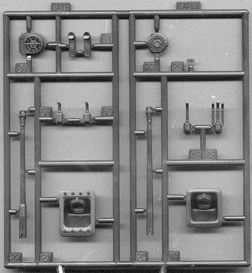 This kit includes a number of optional parts, which allow the modeler to build either the early or late versions of the Jagdpanther, or any vehicle exhibiting characteristics intermediate between the two. Some of the options include the main gun, the gun mantle, the exhaust pipes, and the engine intake vents.