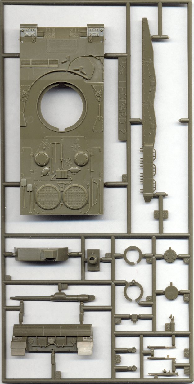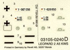 I believe that the Matchbox, Monogram and Revell Leopard 2A4 kits are identical, except for decals. The Leoprd 2A5 kit is basically a modified version of the earlier Leopard 2A4, and includes the entire A4 model in the box, with an additional sprue of parts for the new turret. Molding quality is typical of Revell, with no flash or sinkmarks in my sample.