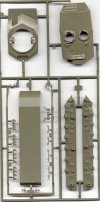 Here is the new sprue for the A5 kit, with the new turret. It also includes a new style of side armor skirts, a new gun, and additional armor pieces for the hull front. Notice the open hatches. Revell seems to have regressed some with their later releases by now molding all hatches closed.