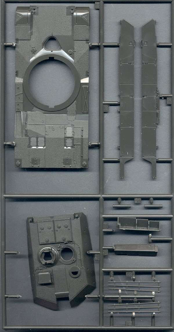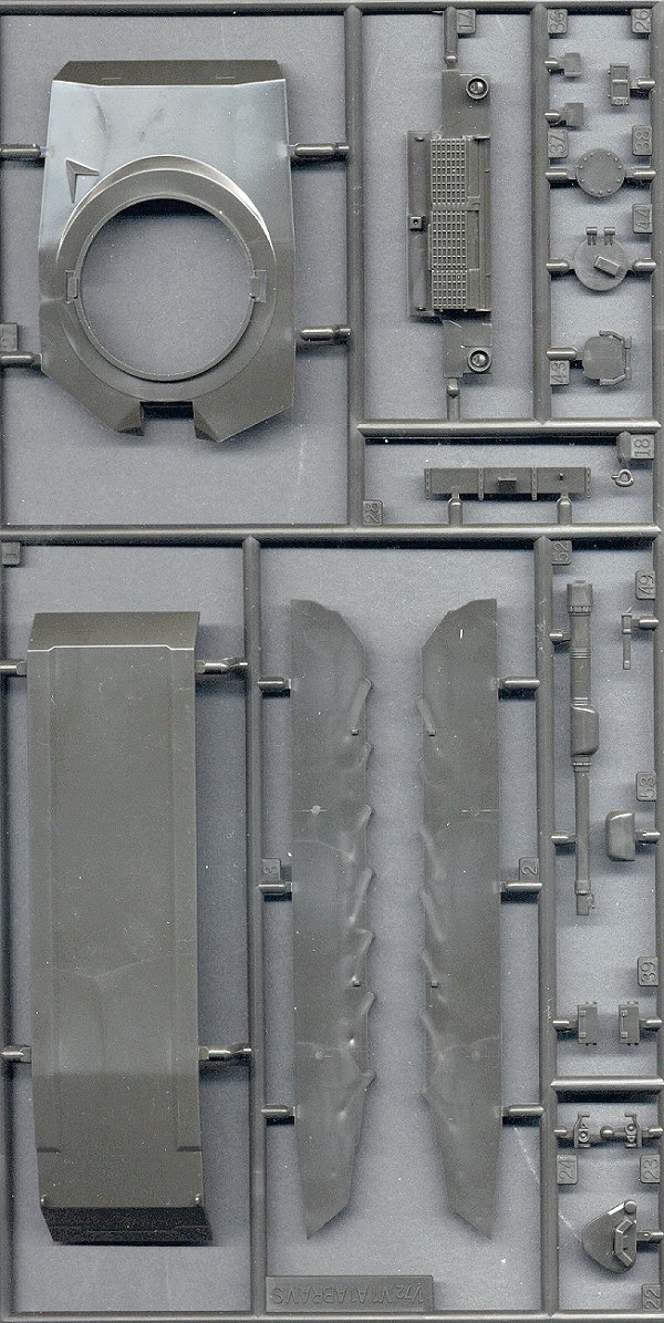 Extremely fine molding and attention to detail make this one of the best small scale models available today. The turret and hull have very delicate non-skid surfacing molded onto them, and all hatches are molded open. I wonder why Revell regressed with their later releases, by molding them closed.
