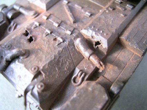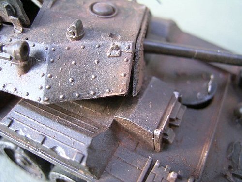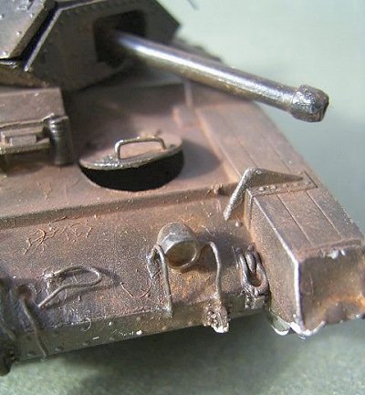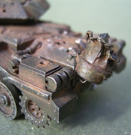 I have often felt that one of the weak points in my modelling is in finishing, especially in simulating various effects of wear and tear. It may be that I like the neat little thingies too much in their out-of-the-box condition to deliberately damage and batter them. However, realizing the sense of life these kind of treatments may give to the model, I wanted to practice my skills in this area. So I decided to dedicate one kit completely to different aging and damaging tests. Normally I model mostly German WW II vehicles, but this time I did not let this limit the choosing of the subject. What I wanted was a nicely detailed kit from the WWII era, that would be easy to build and cheap to purchase. As such I picked up the Crusader Mk III by Revell (formerly Hasegawa). There would have been some other interesting choices in the same price range, too, but the Crusader appeared to be a very suitable model for this kind of purpose. Some of the kits structural solutions put certain limits to the process, however, and for instance the solidly molded inner road wheels prevented any "collapsed spring" experiments. I wanted the model to be somewhat consistent and story-telling in its finished state, not a collection of random bents, bumps, shell penetrations and the like. Hence the model tries to represent a vehicle, which has been in hard active use, then suffered a destructing hit and finally left to the mercies of weather and scavengers. To achieve this I did the following.