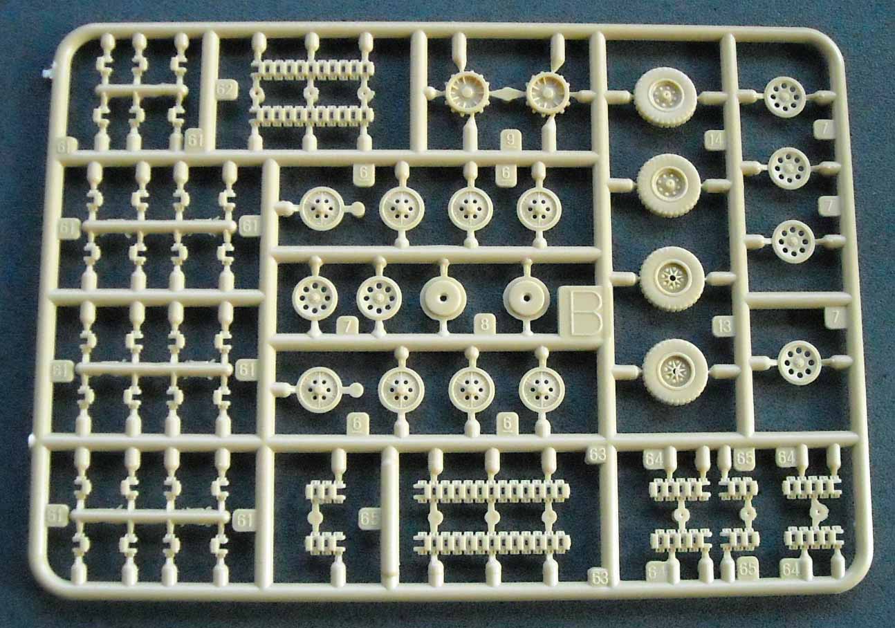Sd.Kfz.251 kits.) Sprue B is for the running gear. You get very nice L&L tracks and separate outer roadwheels (unlike in Dragon's kits, where they are still nice but where the second row is interconnected). The front wheels come in two halves, and while the thread pattern is nice, it might get marred by the assembly process. Sprue C is for the small bits. You