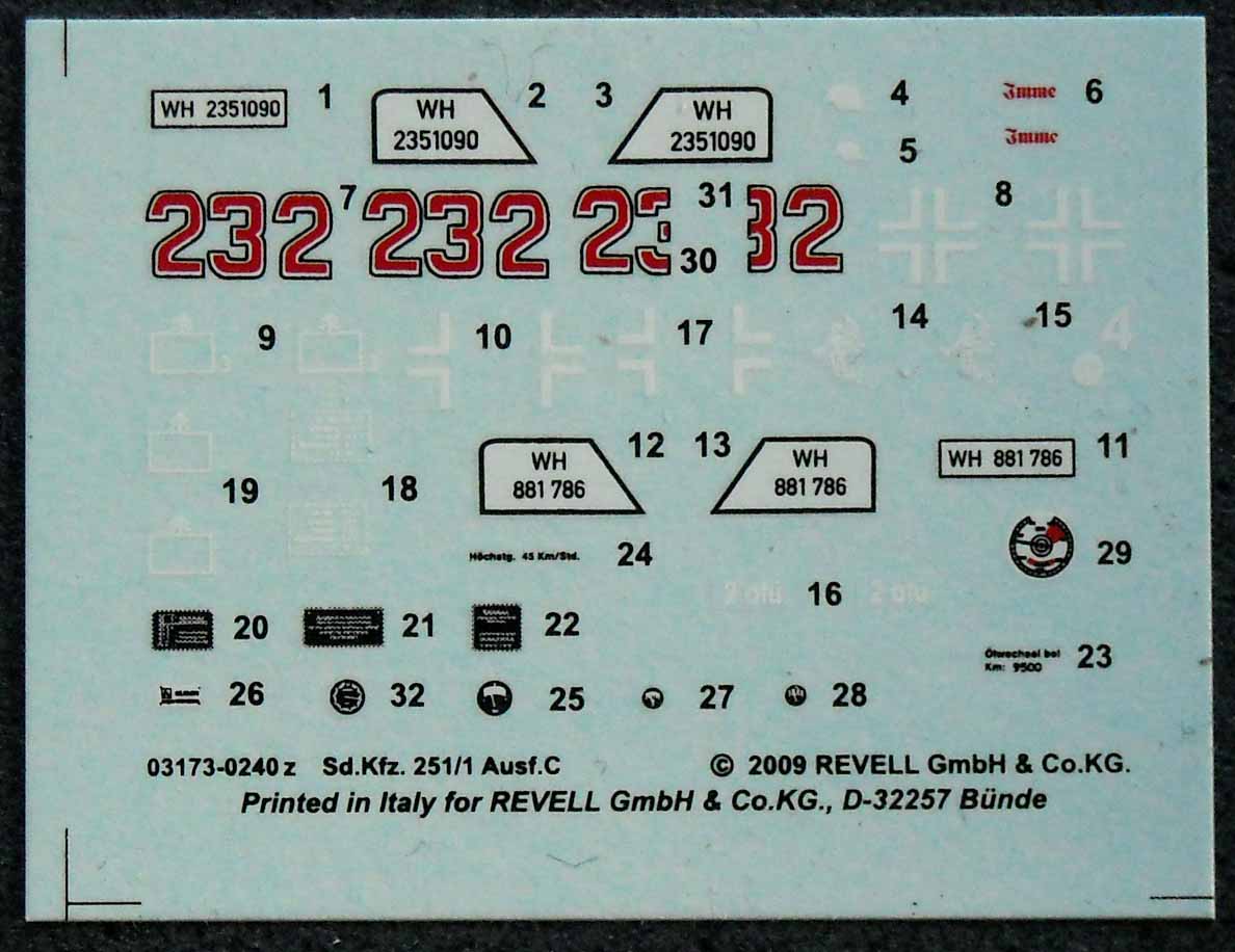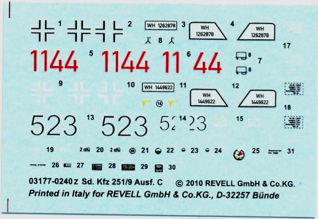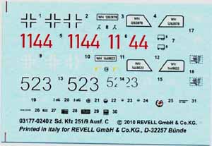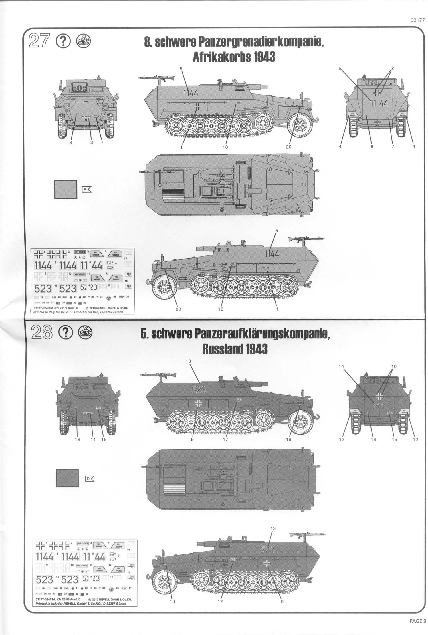 b) Sd.Kfz.251/9 Again, you get two options, but this time Revell has been very sloppy. 1) 8. schwere Panzergrenadierkompanie Afrikakorbs [sic] 1943. Overall