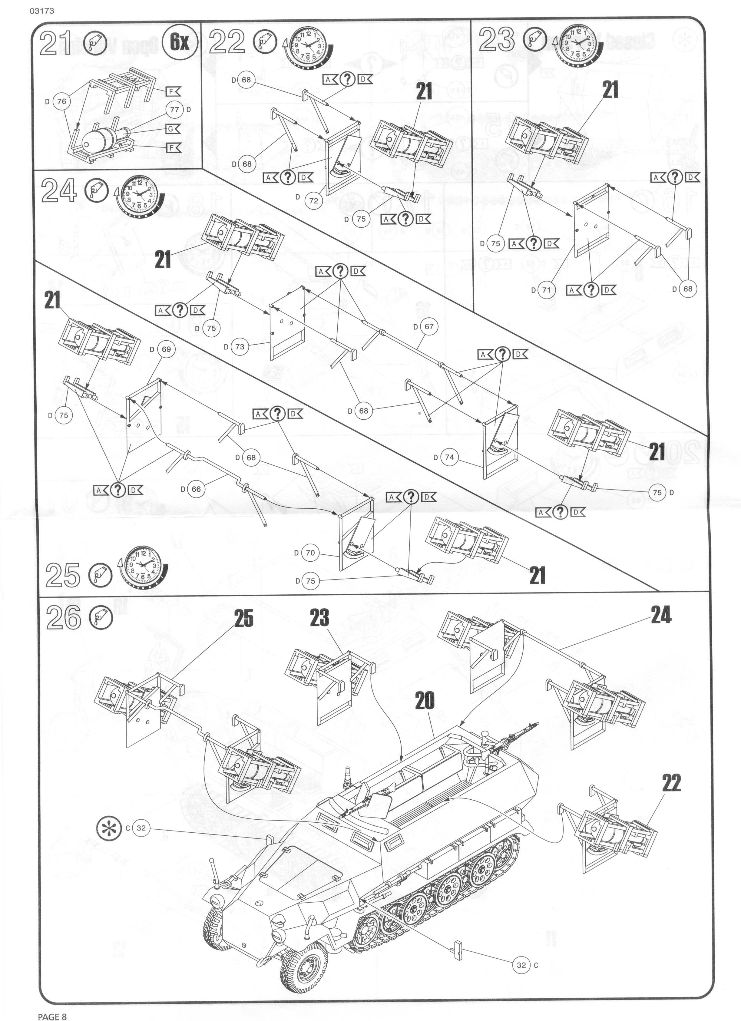 doors (something Dragon doesn't). a) Sd.Kfz.251/1 Stuka zu Fuss The last sprue in this kit is for the Wurfrahmen and rockets. In all respects these are nicely done. They are simpler than Dragon's, but probably much less fiddly to assemble. Note that by leaving these parts of, you can obtain an "ordinary" /1.