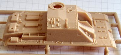 The "panel lines" on both kits are engraved, yet in the case of the Esci Stug, they look a little bit overdone, while Revell seems to have found the right way. Esci gives you the option of adding side skirts and two different gun barrels, while the Revell StuG has a fixed gun barrel / gun assembly and no sideskirts except the rig which would hold the sideskirts.