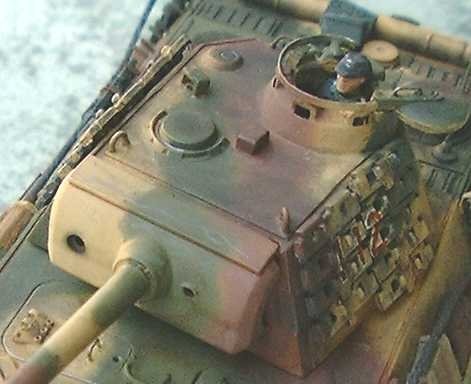 I repositioned both the kit supplied jack and barrel cleaning rod case. Extra track was mounted on the turret's sides for additional armour protection. I also added an additional periscope to the turret roof just in front of the commander's cupola. (I am unsure if this is accurate but I've seen various line drawing to suggest that some vehicles had one there. Please note that I haven't seen a photograph of this periscope but its a risk I'm willing to take.)