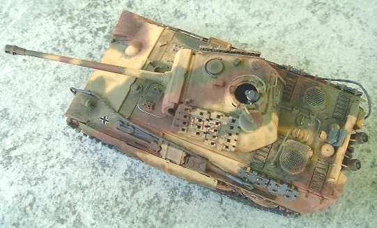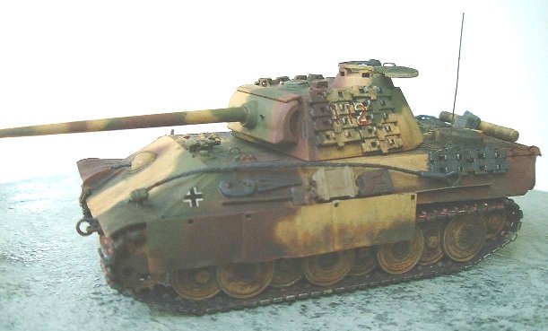The kit was a pretty straight forward build. I got cold feet when I got to mounting the Tiger's steel wheels because I was not sure if they would match up with the Panther's tracks. I wasn't even sure if the steel wheels used on these two vehicles were one and the same (I'm still not) but after four months I figured, "what the hell" and got on with it. Other than fashioning plastic dowels to mount the outer wheels to the inner ones, it was a simple substitution of the steel for the rubber rimmed road wheels. I was very happy with the end result.
