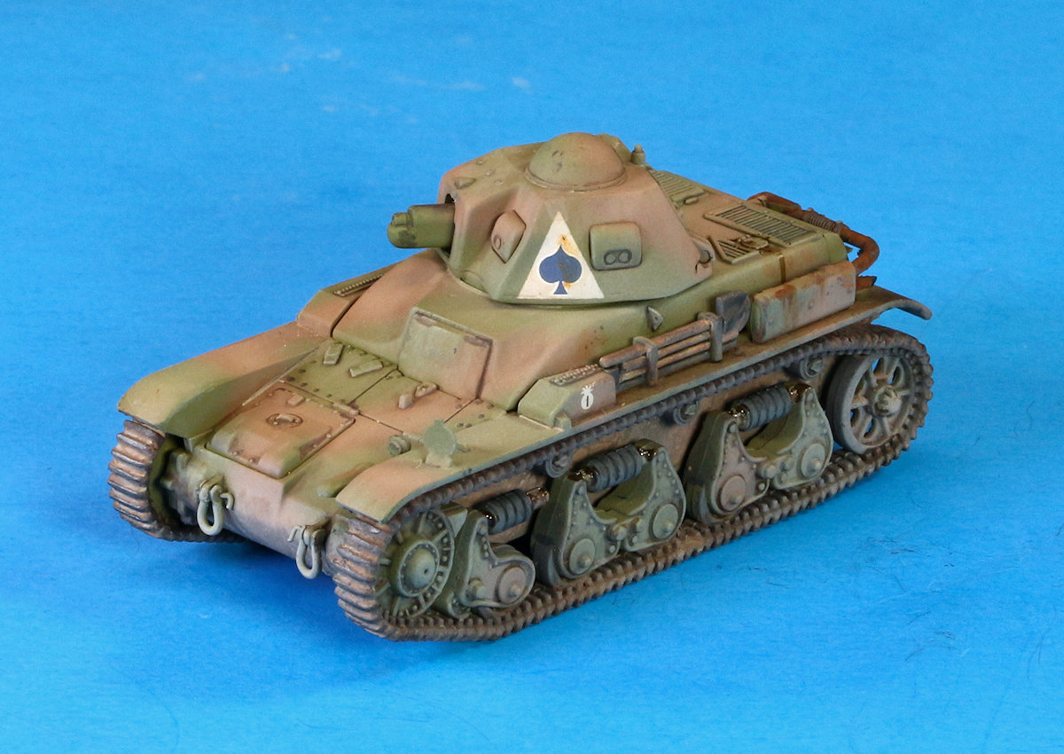 kit is built OOB. There's no reason for me to post photos of the kit parts prior to construction, since we already have a great Preview of this kit from Stephen, which shows most of the kit pre-construction. Which is good, because I failed to make scans of the kit parts regardless. My own observation on the kit construction is that it was incredibly simple. As with most S-Model kits, the weakest part (for us static display modelers) is the running gear. Very over-simplified in order to mold them in single parts. But given that, the outside detail of the wheel units is very nice. The tracks are not detailed on their outer surfaces, and took quite a long time to remove the molding seam from between each link. Judicious use of pigments hides most of the lack of detail on these parts. I painted the model with ATOM paints from AMMO by MIG. I first painted the sides of the turret white, masked off the triangles on each side, and then painted the camouflage. The decals are from MiniPrint (Editions du Barbotin). If I was going to build another one of these, I would add a few more details, and try to replace the running gear with a 3D-printed set from Syndikate Co. It's made for the First-to-Fight R35, but perhaps it can be made to fit this kit as well? Even though I am not doing a complete evaluation of kit accuracy, I took the opportunity to measure the completed model against published dimensions. Turns out that scale plans and dimensions are hard to find for this tank. I found some dimensions listed in an old AFV Weapons Profile (#59), and Wikipedia has measurements that are very close to that old source. Additionally, there are scale plans in Wydnawnictwo Militaria's 355 Plan Pack Vol. I, which when measured, produce the same numbers as those given on Wikipedia. Accordingly, the kit measurements match these numbers almost perfectly, and thus I am confident that this kit scales out very well to 1/72nd. |