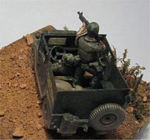 Plates were drawn on paper, then cut from an unused x-ray film (I have plenty of them...). Other details, like door handles, hinges and metal frames on windows for bulletproof glass, were made from stretched sprue. Finally, the frontal plate covering the windshield was built and added to the model. Most vehicles had sandbags on the rear floor as an extra protection against mines, and those were added too. The main radio with the external antenna was glued on the back seat. Glass was not added in most windows because apparently it was rather hard to find, hence it was left out. The driver is converted from Hat WW2 American Tank Riders, while the machine gunner comes from Pegasus U.S.M.C. in Vietnam. Preview sample purchased by the author. |
