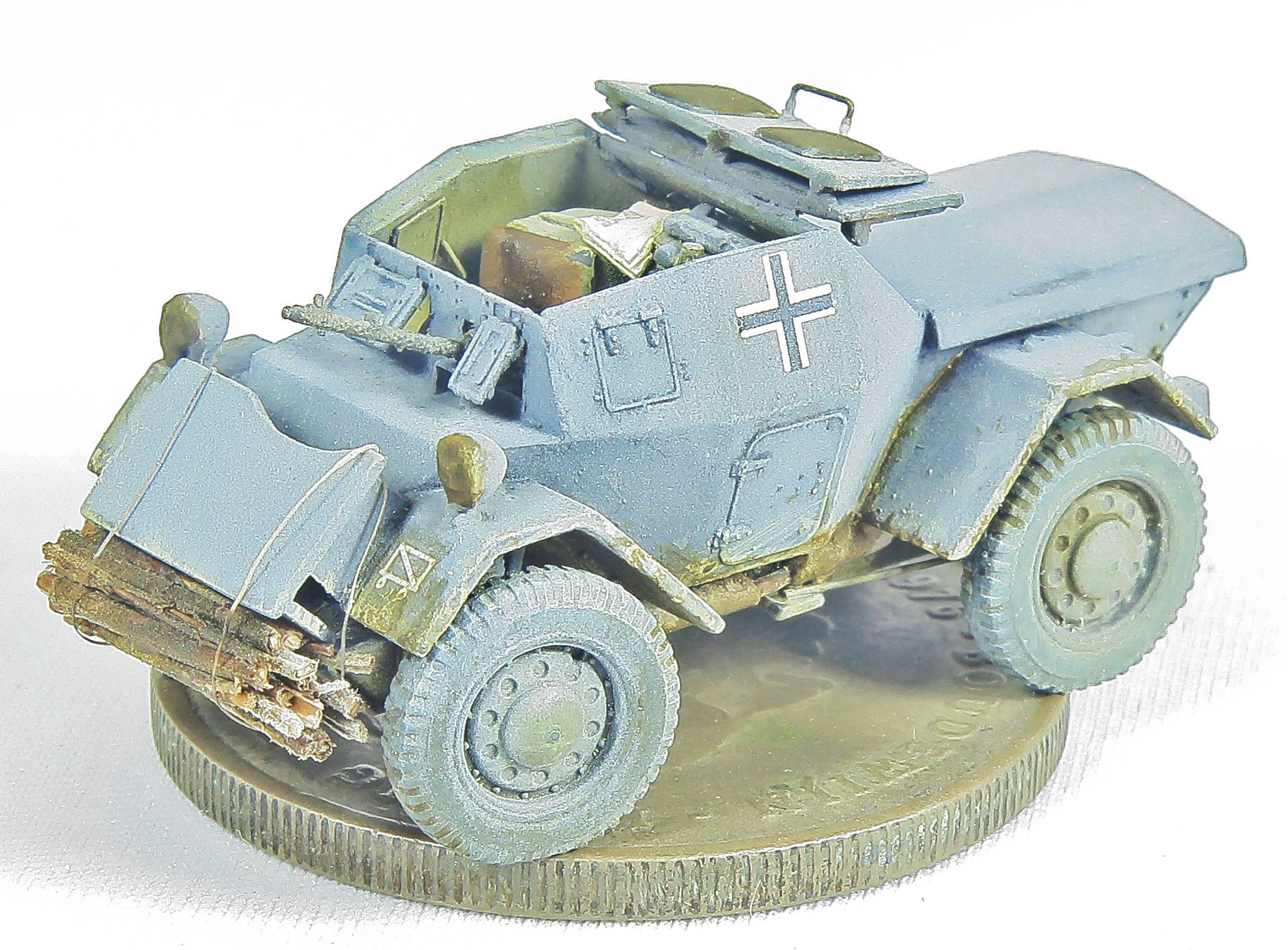 Decals The decals came from the spares box. I can't remember where each one came from, but the Balkenkreuze came from one of my ICM Sd.Kfz.222 kits (which is a great source of spare decals) and the licence plates were from JK Resin, which contains individual numbers, allowing me to copy the real licence plate.