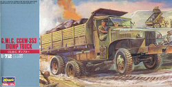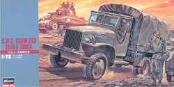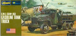 Hasegawas GMC trucks share easy, solid construction and the same basic parts except for the beds. Hasegawa is the only company at this time that offers dump and fuel tanker versions (except for the PSTs BZ-35S exception below). No clear windshield material or towing pintle is included. These truck kits have been around since the 1970s and have greatly simplified cabs and suspensions. Hasegawa offers crew figures with their kits. Decals are for a single star and three different sets of vehicle numbers. The Hasegawa cargo version offers a canvas cover.