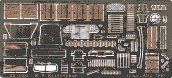 Above is the old Eduard etched brass set Catalogue #: 22020 . This is a great brass set than be used to dress up any of the GMC and Studebaker kits. The front grill I found much to delicate and easily bent out of shape.