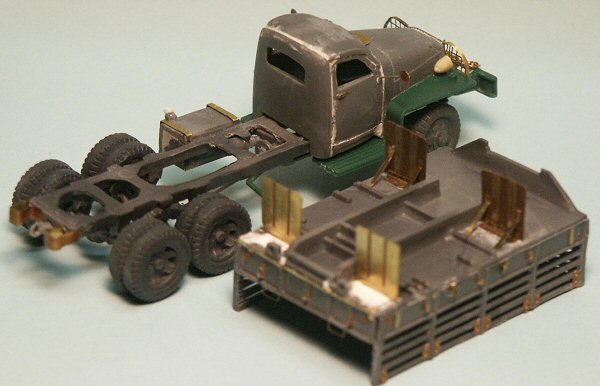 and GMC truck kits. A Wee Bit of History For The Modeler The 2.5-ton truck came about through a US military need for the largest capacity truck that could be produced in large numbers, to supply all US needs as well as for export to Lend Lease allies. Production was largely split between GMC producing trucks for the US Army, Studebaker Company producing 2.5-ton trucks for Lend Lease, and International Harvester producing for the US Navy & Marines. There was some crossover and both GMC and International Harvester deuce & half trucks could be found in Soviet use. The 2.5-ton trucks produced had largely interchangeable parts; the most readily visible differences being in the cab and locations of the fuel tanks and spare tires. Three primary manufacturers produced over 900,000 2.5-ton trucks in all, in both 6x4 and 6x6 versions. Under Lend-Lease they were supplied to the armed forces of Great Britain, Australia, France, the USSR and Poland, etc. Variants included short wheelbase trucks for use as prime movers (artillery tractors), with and without winches on the front bumper, box vans, and fuel & water tanks carriers. Models from 1941 to about 1944 had all-metal civilian looking cabs (represented by Cooperativas and PSTs models). In 1944 a less resource & time consuming soft-top military cab was used for all three manufacturers. Airfixs and Hasegawas kits represent the military cab. I understand that Academy will soon release 1/72 scale GMCs in both the hard cab and the military cab. The Kits, a look at the parts