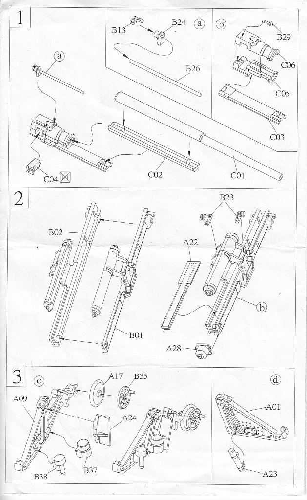 Step 1: The only modification here was cutting down the recoil tube rod (part B26), leaving only a few millimetres. Since I was planning on building my gun in firing position this