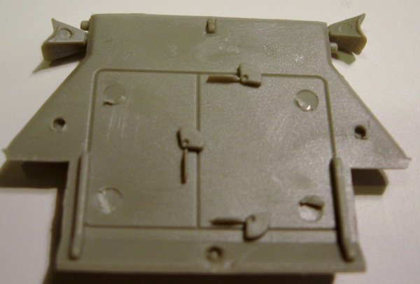 rear doors do have latches on the inside. Alas, any cutting of the doors would damage the detail. The eight tires are rubber. I found only a few sink marks